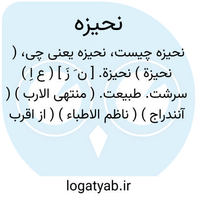 ( نحیزة ) نحیزة. [ ن َ زَ ] ( ع اِ ) سرشت. طبیعت. ( منتهی الارب ) ( آنندراج ) ( ناظم الاطباء ) ( از اقرب الموارد ). ج، نحائز. || روش. ( منتهی الارب ) ( آنندراج ) ( ناظم الاطبا ). طریقه. ( ناظم الاطباء ). || راه باریک که از راههای بزرگ شکافته شود به صحرا. ( منتهی الارب ) ( آنندراج ). راه باریک که از راه بزرگ جدا شده و به جانب صحرا رود. ( ناظم الاطباء ). طریقة من الارض خشنة. ( المنجد ). || ریگ و درشت از زمین، یا پاره ای از آن دراز مقدار یک میل یا زیاد از آن. ( منتهی الارب ) ( آنندراج ). ریگ و زمین درشت، و یا پاره ای از زمین درشت به مقدار یک میل و زیادتر. ( ناظم الاطباء ). راهی خشن و درشت از زمین، و گفته شده است قطعه درازی از آن. ( از اقرب الموارد ). || نوار گرداگرد خرگاه و خیمه. ( منتهی الارب ) ( آنندراج ). نواری که گرداگرد خرگاه و خیمه دوزند. ( ناظم الاطباء ). نوار که بر کناره خیمه افکنند. نوار پشمین. ( مهذب الاسما ). || ( ص ) تأنیث نحیز، بمعنی ناحز و منحوز. رجوع به نحیز و ناحز شود. || ناقه مضروبه. ( از اقرب الموارد ).
