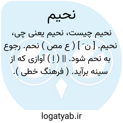لغت نامه دهخدا نحیم. [ ن َ ] ( ع مص ) نحم. رجوع به نحم شود. || ( اِ ) آوازی که از سینه برآید. ( فرهنگ خطی ).