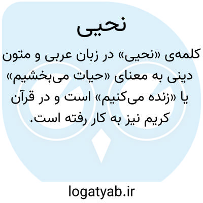 کلمهی «نُحْیِی» در زبان عربی و متون دینی به معنای «حیات میبخشیم» یا «زنده میکنیم» است و در قرآن کریم نیز به کار رفته است. این واژه از ریشه «حیی» گرفته شده و به فعل «زنده کردن» اشاره دارد. نمونهای از کاربرد آن در آیه ۲۳ سوره حجر آمده است: «وَإِنَّا لَنَحْنُ نُحْيِي وَنُمِيتُ وَنَحْنُ الْوَارِثُونَ»؛ یعنی «و یقیناً ماییم که حیات میبخشیم، و میمیرانیم و ما وارث [جهان و جهانیان] هستیم». در این آیه، «نُحْیِی» به قدرت الهی برای زنده کردن موجودات و ایجاد حیات اشاره دارد و نشاندهنده یکی از صفات خداوند است. واژه «نُحْیِی» در متون دینی، فلسفی و عرفانی به معنای احیای جسم، جان یا روح نیز استفاده میشود و تأکید بر نقش خالق در زندگی و مرگ دارد. این فعل با مفاهیمی مانند زنده کردن، احیا، حیات بخشی و ایجاد حیات مرتبط است. در قرآن و ادبیات دینی، این واژه نشاندهنده قدرت مطلق خداوند بر زندگی و مرگ و تسلط او بر جهان هستی است.