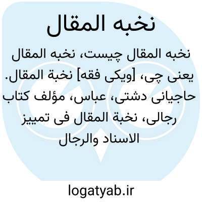 [ویکی فقه] نخبة المقال. حاجیانی دشتی، عباس، مؤلف کتاب رجالی، نخبة المقال فی تمییز الاسناد والرجال می باشد.