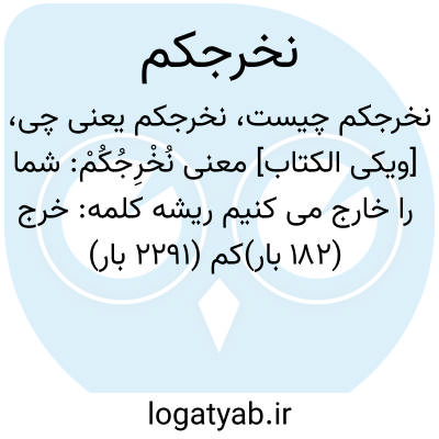 دانشنامه اسلامی [ویکی الکتاب] معنی نُخْرِجُکُمْ: شما را خارج می کنیمریشه کلمه: خرج (۱۸۲ بار)کم (۲۲۹۱ بار)