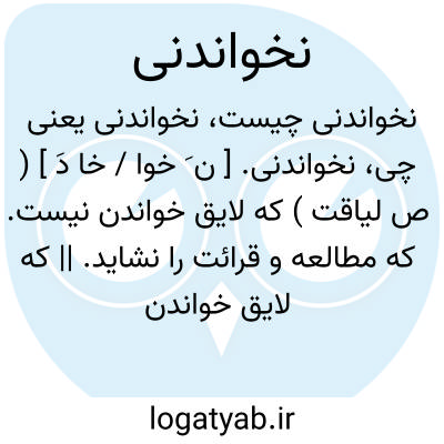نخواندنی. [ ن َ خوا / خا دَ ] ( ص لیاقت ) که لایق خواندن نیست. که مطالعه و قرائت را نشاید. || که لایق خواندن و دعوت کردن نیست.