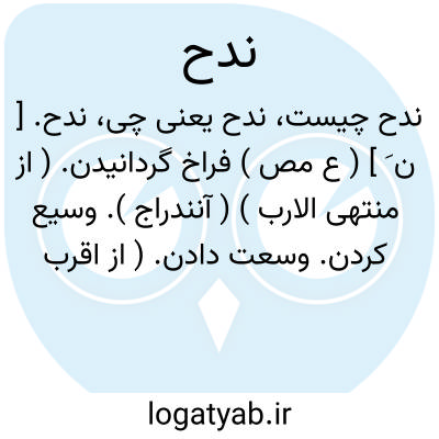 ندح. [ ن َ ] ( ع مص ) فراخ گردانیدن. ( از منتهی الارب ) ( آنندراج ). وسیع کردن. وسعت دادن. ( از اقرب الموارد ).