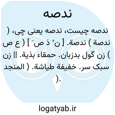 ( ندصة ) ندصة. [ ن ُ دَ ص َ ] ( ع ص ) زن گول بدزبان. حمقاء بذیة. || زن سبک سر. خفیفة طیاشة. ( المنجد ).