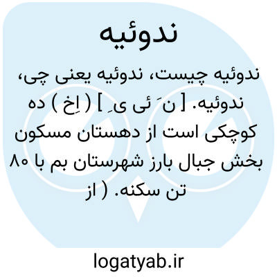ندوئیه. [ ن َ ئی ی ِ ] ( اِخ ) ده کوچکی است از دهستان مسکون بخش جبال بارز شهرستان بم با 80 تن سکنه. ( از فرهنگ جغرافیایی ایران ج 8 ).