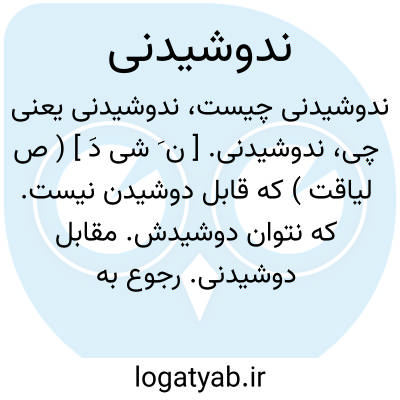 ندوشیدنی. [ ن َ شی دَ ] ( ص لیاقت ) که قابل دوشیدن نیست. که نتوان دوشیدش. مقابل دوشیدنی. رجوع به دوشیدنی شود.