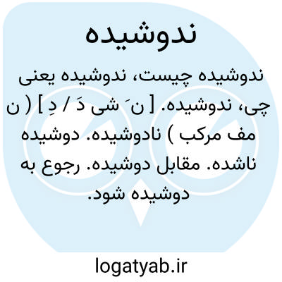 ندوشیده. [ ن َ شی دَ / دِ ] ( ن مف مرکب ) نادوشیده. دوشیده ناشده. مقابل دوشیده. رجوع به دوشیده شود.
