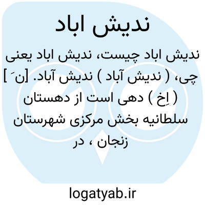 ( ندیش آباد ) ندیش آباد. [ن َ ] ( اِخ ) دهی است از دهستان سلطانیه بخش مرکزی شهرستان زنجان، در 54هزارگزی زنجان و 2هزارگزی راه سلطانیه به قیدار، در ناحیه کوهستانی معتدل هوای مرطوبی واقع است و 167 تن سکنه دارد. آبش از چشمه و رودخانه، محصولش غلات و بنشن، شغل اهالی زراعت و گلیم بافی و جاجیم بافی است. ( از فرهنگ جغرافیایی ایران ج 2 ).
