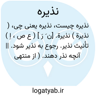 ( نذیرة ) نذیرة. [ن َ رَ ] ( ع ص، اِ ) تأنیث نذیر. رجوع به نذیر شود. || آنچه نذر دهند. ( از منتهی الارب ) ( آنندراج ) ( ناظم الاطباء ) ( از اقرب الموارد ) ( از المنجد ). || فرزند که او را مادر و پدرش خادم یا قیم معبد و کلیسا گردانند. مذکر و مؤنث در وی یکسان است. ( منتهی الارب ) ( آنندراج ) ( ناظم الاطباء ) ( از اقرب الموارد ). || طلیعه لشکر که از امور دشمن آگاه سازد و ترساند. ( منتهی الارب ) ( آنندراج ) ( ناظم الاطباء ) ( از اقرب الموارد ) ( از المنجد ). ج، نذائر. || ( اِمص ) انذار. ( اقرب الموارد ) ( المنجد ).