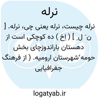 نرله. [ ن َ ل ِ ] ( اِخ ) ده کوچکی است از دهستان باراندوزچای بخش حومه ٔشهرستان ارومیه. ( از فرهنگ جغرافیایی ایران ج 4 ).