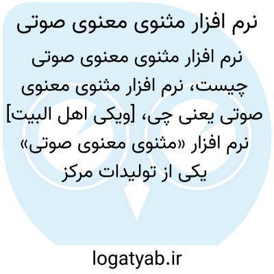 [ویکی اهل البیت] نرم افزار «مثنوی معنوی صوتی» یکی از تولیدات مرکز تحقیقات کامپیوتری علوم اسلامی است. این برنامه حاوی دو لوح فشرده بوده و قابل استفاده در دستگاه های صوتی با پشتیبانی Mp3 Player می باشد.