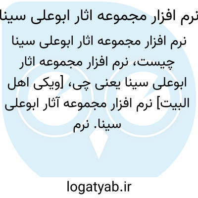 [ویکی اهل البیت] نرم افزار مجموعه آثار ابوعلی سینا. نرم افزار «مجموعه آثار حکیم بوعلی سینا» یکی از تولیدات نرم افزاری مرکز تحقیقات کامپیوتری علوم اسلامی است.