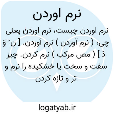 ( نرم آوردن ) نرم آوردن. [ ن َ وَ دَ ] ( مص مرکب ) نرم کردن. چیز سفت و سخت یا خشکیده را نرم و تر و تازه کردن: