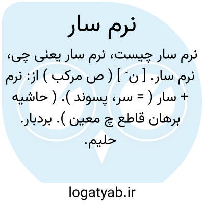 نرم سار. [ ن َ ] ( ص مرکب ) از: نرم + سار ( = سر، پسوند ). ( حاشیه برهان قاطع چ معین ). بردبار. حلیم. ( برهان قاطع ) ( آنندراج ). شکیبا. ( ناظم الاطباء ). || خیرخواه. ( ناظم الاطباء ).