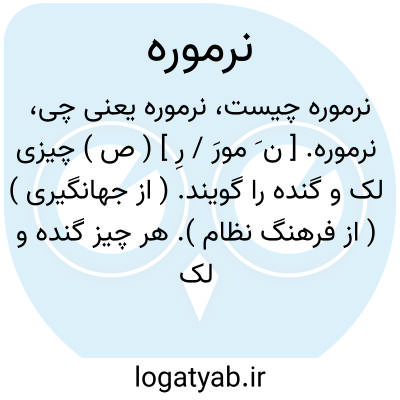 نرموره. [ ن َ مورَ / رِ ] ( ص ) چیزی لک و گنده را گویند. ( از جهانگیری ) ( از فرهنگ نظام ). هر چیز گنده و لک وپک و ناهموار. ( برهان قاطع ) ( آنندراج ). هنگفت. ناهموار. گنده. ( ناظم الاطباء ). || گردکان و فندق بزرگ. ( برهان قاطع ) ( آنندراج ) ( ناظم الاطباء ). || ( اِ ) ریسمانی را نیز گفته اند که هر دو سر آن را بر جائی بندند و شخصی در وسط آن نشیند و دیگری دستی بر او زند تا او متحرک شود و آید و رود و بعضی گویند ریسمانی است که در ایام جشن و عید از جائی آویزند و طفلان وزنان بر آن نشینند و در هوا آیند و روند و به عربی اُرجوحة خوانند. ( برهان قاطع ). ریسمانی که هر دو سر آن به جائی ببندند و در میان آن نشینند و بجنبانند وبه هندی جهوله گویند. ( فرهنگ نظام ) ( از رشیدی ). بادپیچ. ( ناظم الاطباء ) ( از صحاح الفرس ). ارجوحه. لوکانی. غناوه. ( زمخشری ). چنچولی. تاب. ( یادداشت مؤلف ).