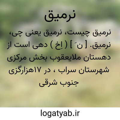 نرمیق. [ ن َ ] ( اِخ ) دهی است از دهستان ملایعقوب بخش مرکزی شهرستان سراب، در 17هزارگزی جنوب شرقی سراب در ناحیه کوهستانی معتدل هوائی واقع است و 679 تن سکنه دارد. آبش از چشمه و رودخانه، محصولش غلات و حبوبات، شغل اهالی زراعت و گله داری و قالی بافی است. ( از فرهنگ جغرافیایی ایران ج 4 ).