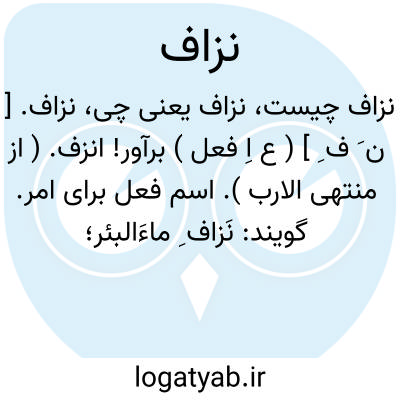 نزاف. [ ن َ ف ِ ] ( ع اِ فعل ) برآور! انزف. ( از منتهی الارب ). اسم فعل برای امر. گویند: نَزاف ِ ماءَالبئر؛ یعنی برآور همه آن را. ( از المنجد ).