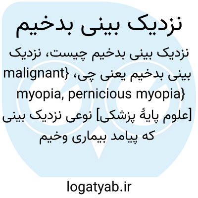 {malignant myopia, pernicious myopia} [علوم پایۀ پزشکی] نوعی نزدیک بینی که پیامد بیماری وخیم مشیمیه است و به جداشدگی شبکیه و کوری منجر می شود