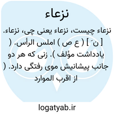 نزعاء. [ ن َ ] ( ع ص ) املس الرأس. ( یادداشت مؤلف ). زنی که هر دو جانب پیشانیش موی رفتگی دارد. ( از اقرب الموارد ). تأنیث انزع. رجوع به انزع و نَزَع شود. || جبهة نزعاء؛ پیشانی فراخ. ( مهذب الاسماء ).