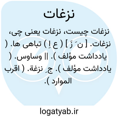 نزغات. [ ن َ زَ ] ( ع اِ ) تباهی ها. ( یادداشت مؤلف ). || وساوس. ( یادداشت مؤلف ). ج ِ نزغة. ( اقرب الموارد ). رجوع به نزغة و نزغ شود: به نزغات شیاطین موارد آن محبت منغص گشت. ( ترجمه تاریخ یمینی ص 238 ). در سابقه نزغات شیاطین در افساد معاقد وداد و هدم قواعد اتحاد تأثیر کرده است. ( ترجمه تاریخ یمینی ص 177 ).