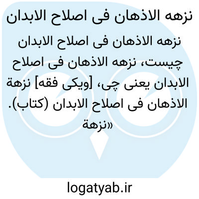 [ویکی فقه] نزهه الاذهان فی اصلاح الابدان (کتاب). «نزهة الاذهان فی اصلاح الابدان» که با نام نزهة الاذهان فی طب الابدان نیز از آن یاد می شود از جمله نگاشته های انطاکی است که وی مباحث مهم و کلیات دانش پزشکی را در آن به رشته تحریر درآورده است.