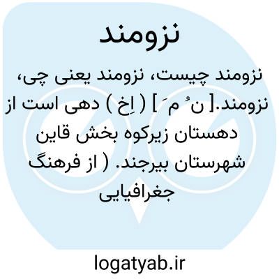 نزومند.[ ن ُ م َ ] ( اِخ ) دهی است از دهستان زیرکوه بخش قاین شهرستان بیرجند. ( از فرهنگ جغرافیایی ایران ج 9 ).