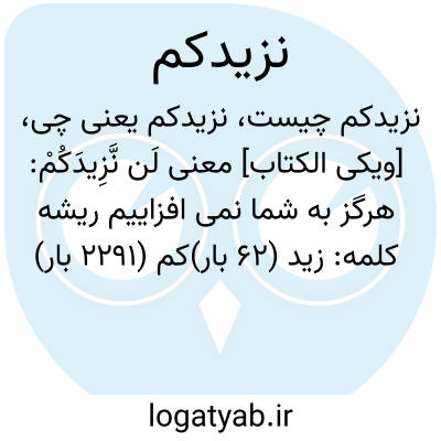دانشنامه اسلامی [ویکی الکتاب] معنی لَن نَّزِیدَکُمْ: هرگز به شما نمی افزاییمریشه کلمه: زید (۶۲ بار)کم (۲۲۹۱ بار)
