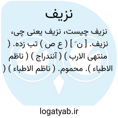 نزیف. [ ن َ ] ( ع ص ) تب زده. ( منتهی الارب ) ( آنندراج ) ( ناظم الاطباء ). محموم. ( ناظم الاطباء ) ( اقرب الموارد ) ( المنجد ). || سخت تشنه که رگها و زبانش خشک گردد. ( منتهی الارب ) ( آنندراج ). کسی که از بسیاری تشنگی زبان و رگهای بدن وی خشک شده باشد. ( ناظم الاطباء ) ( اقرب الموارد ) ( ازالمنجد ). || آنکه از بسیاری رفتگی خون سست شده باشد. ( منتهی الارب ) ( آنندراج ) ( از اقرب الموارد ) ( از المنجد ). ضعیف. ( دهار ). که ضعیف شده باشد از بیرون آمدن خون بسیار. ( مهذب الاسماء ). || مست. ( منتهی الارب ) ( آنندراج ). سَکْران. ( اقرب الموارد ) ( المنجد ). مستی که عقل وی زایل شده باشد. ( ناظم الاطباء ). || بیهوش. ( منتهی الارب ) ( آنندراج ). || بئر نزیف؛ چاه کم آب. ( از المنجد ). رجوع به نزف شود. || کسی که در خصومت حجت وی قطع شده باشد. ( ناظم الاطباء ). رجوع به نَزْف شود.