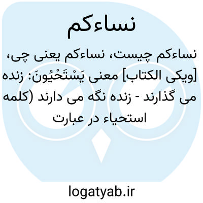 [ویکی الکتاب] معنی یَسْتَحْیُونَ: زنده می گذارند - زنده نگه می دارند (کلمه استحیاء در عبارت "یَسْتَحْیُونَ نِسَاءَکُمْ" به معنای طلب حیات و زندگی است، ممکن هم هست معنای آن این باشد که با زنان شما کارهائی میکردند، که حیاء و شرم از ایشان برود )