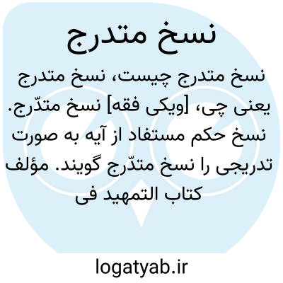 [ویکی فقه] نسخ متدّرج. نسخ حکم مستفاد از آیه به صورت تدریجی را نسخ متدّرج گویند.