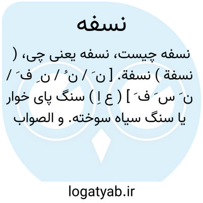 ( نسفة ) نسفة. [ ن َ / ن ُ / ن ِ ف َ / ن َ س َ ف َ ] ( ع اِ ) سنگ پای خوار یا سنگ سیاه سوخته. و الصواب بالشین [ نشفة ] أو لغتان. ( منتهی الارب ). سنگ پای. سنگ سیاه سوخته ای که بدان کف پای را پاک کنند. ( ناظم الاطباء ) ( از اقرب الموارد ). ج، نِسَف، نُسَف، نُسُف، نِساف.
