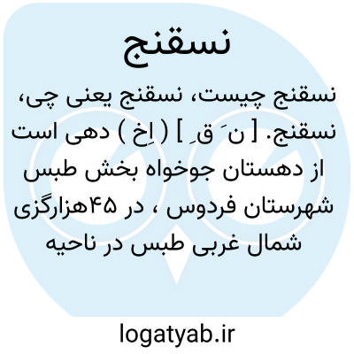 نسقنج. [ ن َ ق ِ ] ( اِخ ) دهی است از دهستان جوخواه بخش طبس شهرستان فردوس، در 45هزارگزی شمال غربی طبس در ناحیه کوهستانی معتدل هوائی واقع است و 127 تن سکنه دارد. آبش از قنات، محصولش غلات و گاورس، شغل اهالی زراعت است. ( از فرهنگ جغرافیایی ایران ج 9 ).