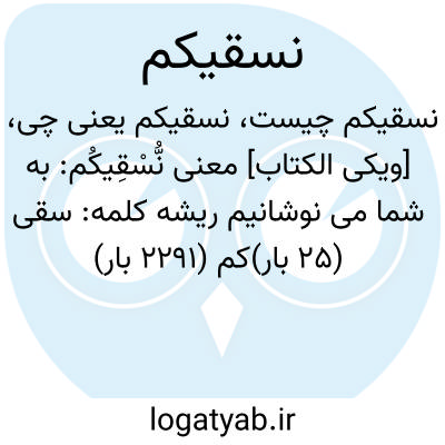 دانشنامه اسلامی [ویکی الکتاب] معنی نُّسْقِیکُم: به شما می نوشانیمریشه کلمه: سقی (۲۵ بار)کم (۲۲۹۱ بار)