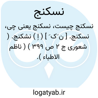 نسکنج. [ ن َک َ ] ( اِ ) نشکنج. ( شعوری ج 2 ص 399 ) ( ناظم الاطباء ).