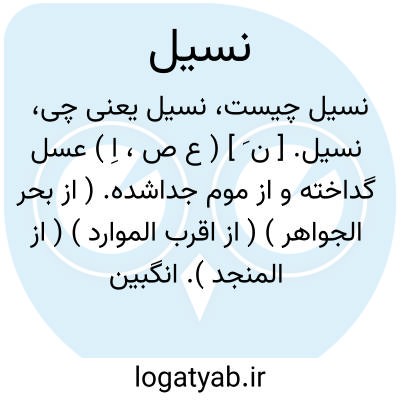 نسیل. [ ن َ ] ( ع ص، اِ ) عسل گداخته و از موم جداشده. ( از بحر الجواهر ) ( از اقرب الموارد ) ( از المنجد ). انگبین گداخته و از موم جداشده. ( منتهی الارب ) ( آنندراج ) ( فرهنگ خطی ) ( از ناظم الاطباء ). || گوشت بی توابل پخته. ( از بحر الجواهر ). || آنچه افتد از پشم و پر و جز آن. ( از منتهی الارب ) ( از المنجد ) ( آنندراج ) ( از اقرب الموارد ). پر و پشم افتاده و ساقطشده.( ناظم الاطباء ). واحد آن نسیلة است. ( منتهی الارب ).