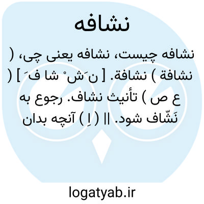 ( نشافة ) نشافة. [ ن َش ْ شا ف َ ] ( ع ص ) تأنیث نشاف. رجوع به نَشّاف شود. || ( اِ ) آنچه بدان آب جذب شود. ( از اقرب الموارد ). اسم عربی اسفنج است. ( فرهنگ خطی ). کاغذ نشاف. آب خشک کن. مرکب خشک کن. خشک کن. || دستار پاک کردنی. ( منتهی الارب ) ( ناظم الاطباء ). رومال. دستمال. ( ناظم الاطباء ).