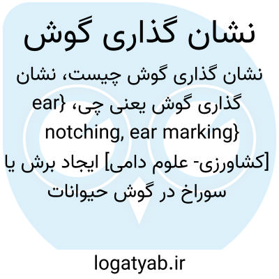 {ear notching, ear marking} [کشاورزی- علوم دامی] ایجاد برش یا سوراخ در گوش حیوانات برای شناسایی آنها متـ. نشان گذاری 2
