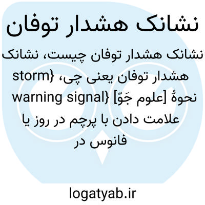 {storm warning signal} [علوم جَوّ] نحوۀ علامت دادن با پرچم در روز یا فانوس در شب از برج ساحلی هشدار توفان