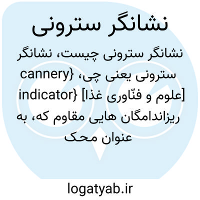 {cannery indicator} [علوم و فنّاوری غذا] ریزاندامگان هایی مقاوم که، به عنوان مـحـک آلــودگـی یا سلامت میـکربی یـک مـادۀ غذایی، وجود و تعداد آنها در مادۀ غذایی سنجش یا پایش می شود
