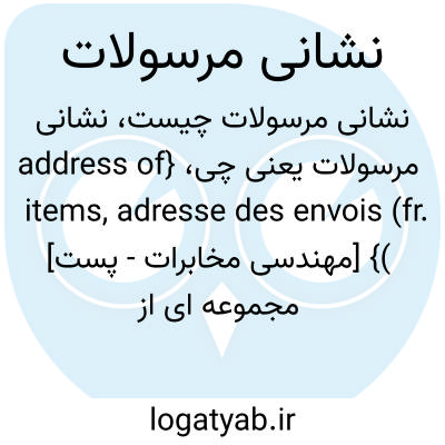 {address of items, adresse des envois (fr. )} [مهندسی مخابرات - پست] مجموعه ای از اطلاعات که بر روی مرسوله درج می شود و تحویل آن را به گیرنده ممکن می سازد