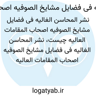 نشر المحاسن الغالیه فی فضایل مشایخ الصوفیه اصحاب المقامات العالیه