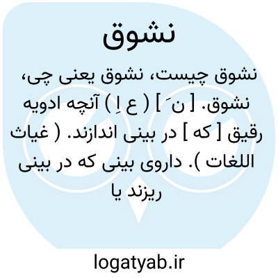 نشوق. [ ن َ ] ( ع اِ ) آنچه ادویه رقیق [ که ] در بینی اندازند. ( غیاث اللغات ). داروی بینی که در بینی ریزند یا ببویند آن را تا از حرارت و بویش عطسه برآید. ( آنندراج ) ( منتهی الارب ) ( از اقرب الموارد ). داروی در بینی ریختنی و داروئی که به بینی کشند. ( ناظم الاطباء ) ( از المنجد ). اجسام رطبه که به واسطه هوا به بینی کشیده شود، و هرچه را که به دم به بینی درکشنداز بخار یا بوی. ( یادداشت مؤلف از بحر الجواهر ). کل ما استعمل ناشقا کالفلفل لتعطیس و الشب لقطعالرم. ( ضریر انطاکی ). آنچه به بینی درکشند از دوای کوفته یا مایع یا بخار و دود. ( یادداشت مؤلف ). || کنایه از وساوس شیطانی است. ( از معجم متن اللغة ).