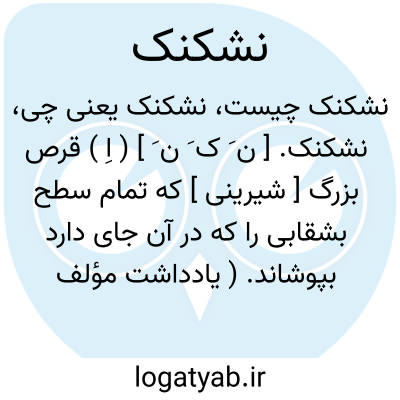 نشکنک. [ ن َ ک َ ن َ ] ( اِ ) قرص بزرگ [ شیرینی ] که تمام سطح بشقابی را که در آن جای دارد بپوشاند. ( یادداشت مؤلف ).