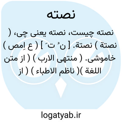 ( نصتة ) نصتة. [ ن ُ ت َ ] ( ع اِمص ) خاموشی. ( منتهی الارب ) ( از متن اللغة )( ناظم الاطباء ) ( از اقرب الموارد ) ( از المنجد ). اسم است از نصت. ( از اقرب الموارد ). رجوع به نَصت شود.