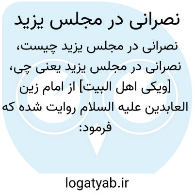 یزید: این سر حسین بن علی بن ابی طالب است، نصرانی گفت: مادرش کیست؟ یزید گفت: فاطمه دختر رسول خدا صلی الله علیه و آله و سلم!! نصرانی گفت: نفرین بر تو و بر دین تو که دین من بهتر از دین تو است زیرا میان من و حضرت داود پدران بسیاری فاصله است نصاری مرا بزرگ می شمارند و خاک زیر پای مرا به تبریک می گیرند و شما پسر دختر پیامبر خود را می کشید با این که میان شما و پیامبرتان بیش از یک مادر فاصله نیست. سپس گفت: یزید داستان کلیسای حافر را شنیده ای؟ گفت: بگو تا بشنوم، نصرانی گفت: در میان دریا جزیره ای است و در آن جزیره کلیسائی است بنام کلیسای حافر و در محراب آن حلقه ای آویزان است و در آن حقه سم درازگوشی در حریر پیچیده است که نصاری گمان می کنند سم درازگوش عیسی است و هر سال جمعیت انبوهی برای زیارت به آنجا می روند و گرد آن حلقه طواف می کنند و آن را می بوسند و حاجات خود را از خدا می خواهند، این رفتار مسیحیان است نسبت به سم درازگوش عیسی بن مریم ولی شما پسر دختر پیامبر خود را شهید می کنید.