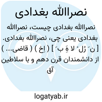 نصراﷲ بغدادی. [ ن َ رُل ْ لا هَِ ب َ ] ( اِخ ) ( قاضی... ) از دانشمندان قرن دهم و با سلاطین آق قویونلو معاصر است، وی در تبریز مسند قضا داشته است. رجوع به اعلام کتاب حبیب السیر ص 251 و حبیب السیر ج 3 جزو 4 ص 114 شود.