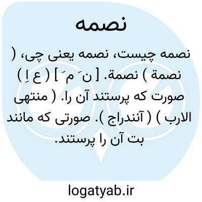 ( نصمة ) نصمة. [ ن َ م َ ] ( ع اِ ) صورت که پرستند آن را. ( منتهی الارب ) ( آنندراج ). صورتی که مانند بت آن را پرستند. ( ناظم الاطباء ) ( از متن اللغة ). نَصَمَة. ( متن اللغة ).