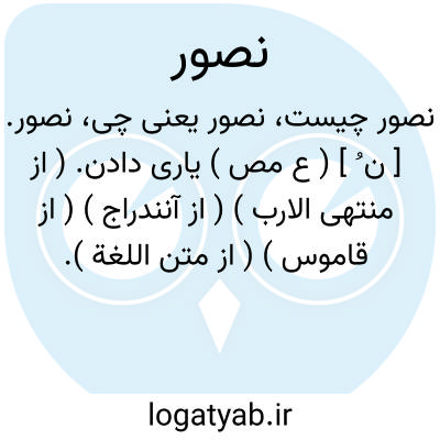 نصور. [ ن ُ ] ( ع مص ) یاری دادن. ( از منتهی الارب ) ( از آنندراج ) ( از قاموس ) ( از متن اللغة ). نصر. ( متن اللغة ) ( ناظم الاطباء ). رجوع به نصر شود. || رهانیدن کسی را از دیگری. ( از منتهی الارب ) ( از آنندراج ). رجوع به نَصر شود. || باران رسیدن به همه زمین. ( از منتهی الارب ) ( از آنندراج ). رجوع به نَصر شود. || ( ص، اِ ) ج ِ ناصر. ( از متن اللغة ). رجوع به ناصر به معنی یاری کننده شود.