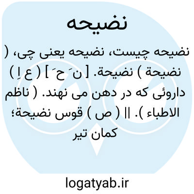( نضیحة ) نضیحة. [ ن َ ح َ ] ( ع اِ ) داروئی که در دهن می نهند. ( ناظم الاطباء ). || ( ص ) قوس نضیحة؛ کمان تیر دورانداز. ( ناظم الاطباء ). رجوع به نُضَحیَّه شود.