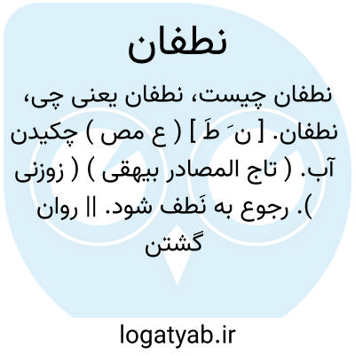 نطفان. [ ن َ طَ ] ( ع مص ) چکیدن آب. ( تاج المصادر بیهقی ) ( زوزنی ). رجوع به نَطف شود. || روان گشتن آب و رفتن آن. ( آنندراج ). رجوع به نَطف شود. || به فجور تهمت کردن و به عیب آلودن. رجوع به نَطف شود.